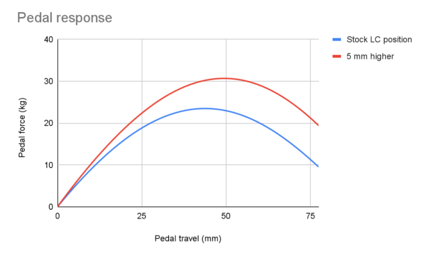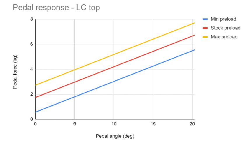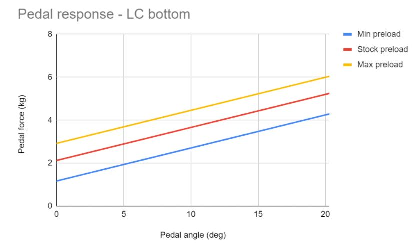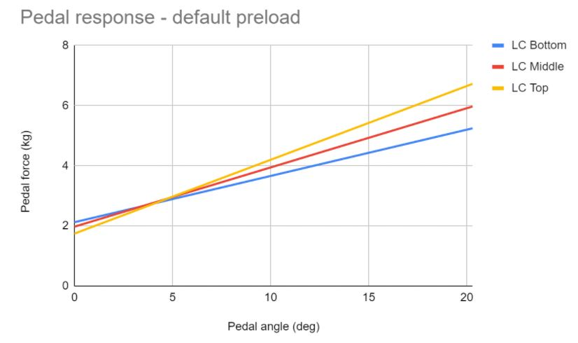 Here’s a graph for the pedal response when adjusted for various load cell and corresponding spring seat hole positions: