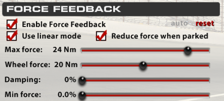 Once you have your settings for each car and are happy with the overall force, set it and forget it! Generally you shouldn’t adjust for different tracks or for different weather conditions for a given car, because you want to be able to feel the differences in grip level of the track surface. Our World Championship VRS Coaches use this mindset, and say it only takes one trip through Turn 1 of any track to know exactly how much grip the track and tire has, allowing them to push all-out at the start of every stint.