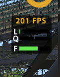 First, we need to explain FFB clipping. In iRacing, hit F (by default) to bring up telemetry of your force feedback. Here we can see the F bar, showing the current FFB output to the VRS DirectForce Pro Wheel Base controller. The “clipping point” is when the F bar turns red and is maxed out, which means the force feedback can’t go any higher. Clipping is undesirable under normal driving conditions, so you need a high enough clipping point. However, setting the clip point too high results in a weaker overall FFB strength.